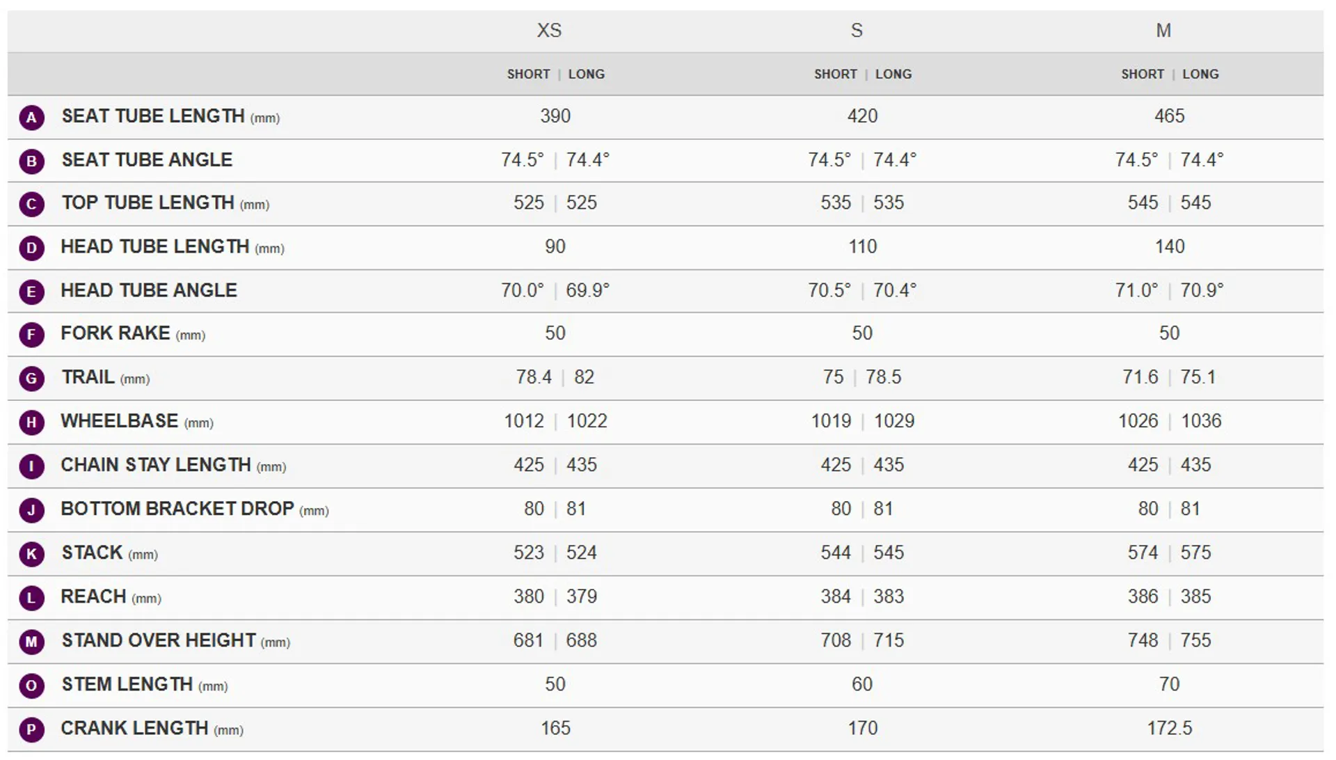 XS, S, M