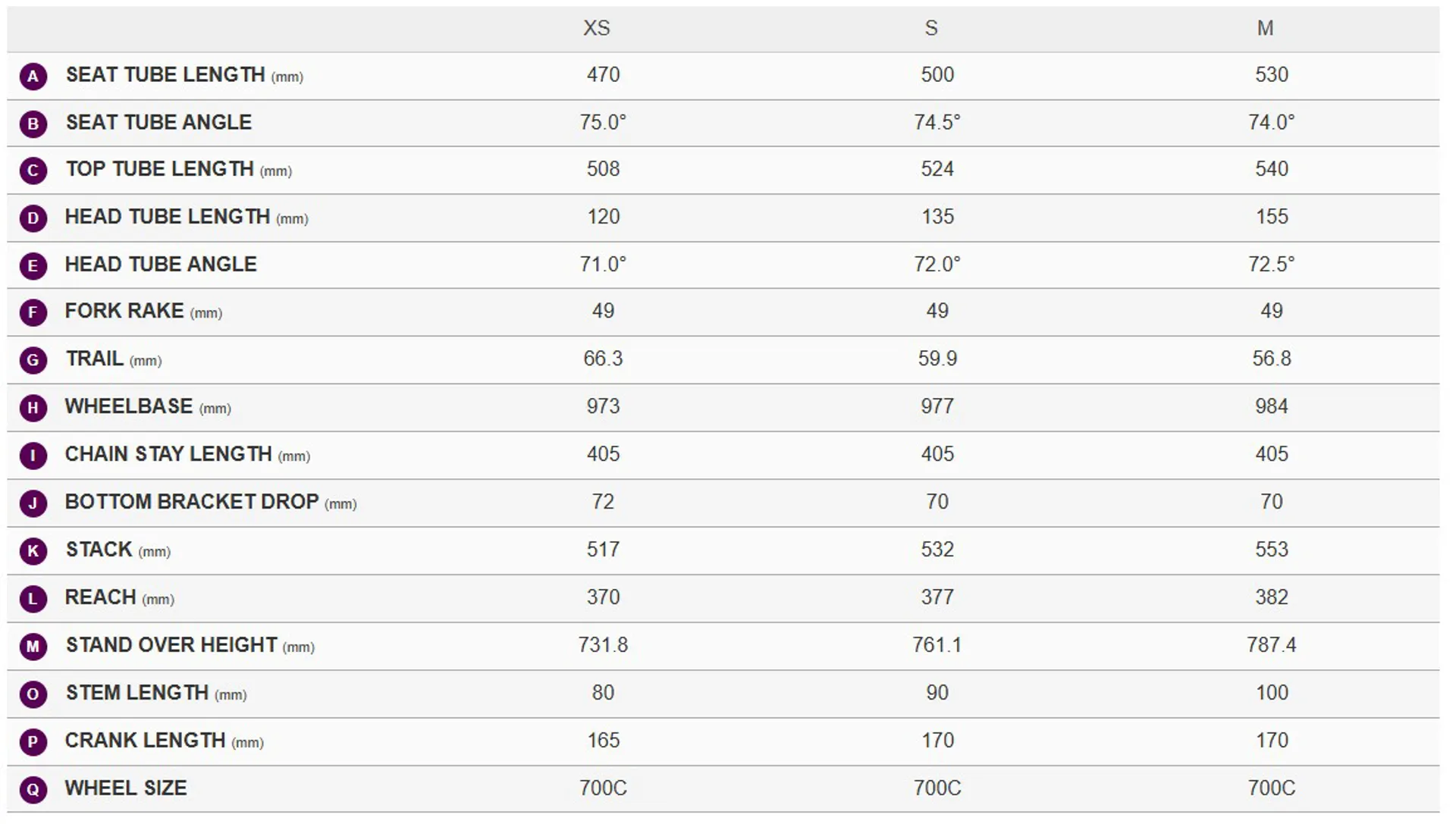 Shimano 105, 36/52 with Giant Power Pro power meter XS:165mm, S:165mm, M:170mm