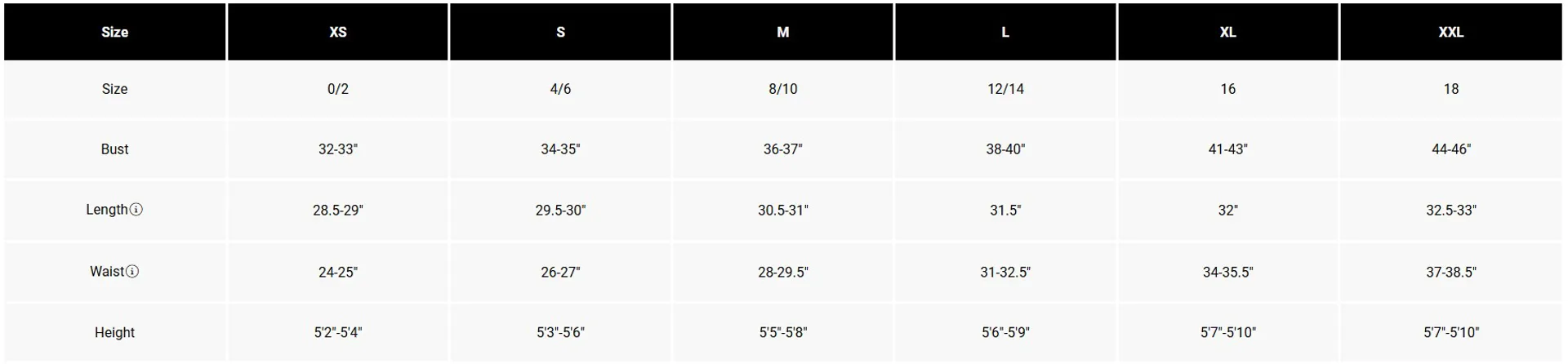Sizing Information