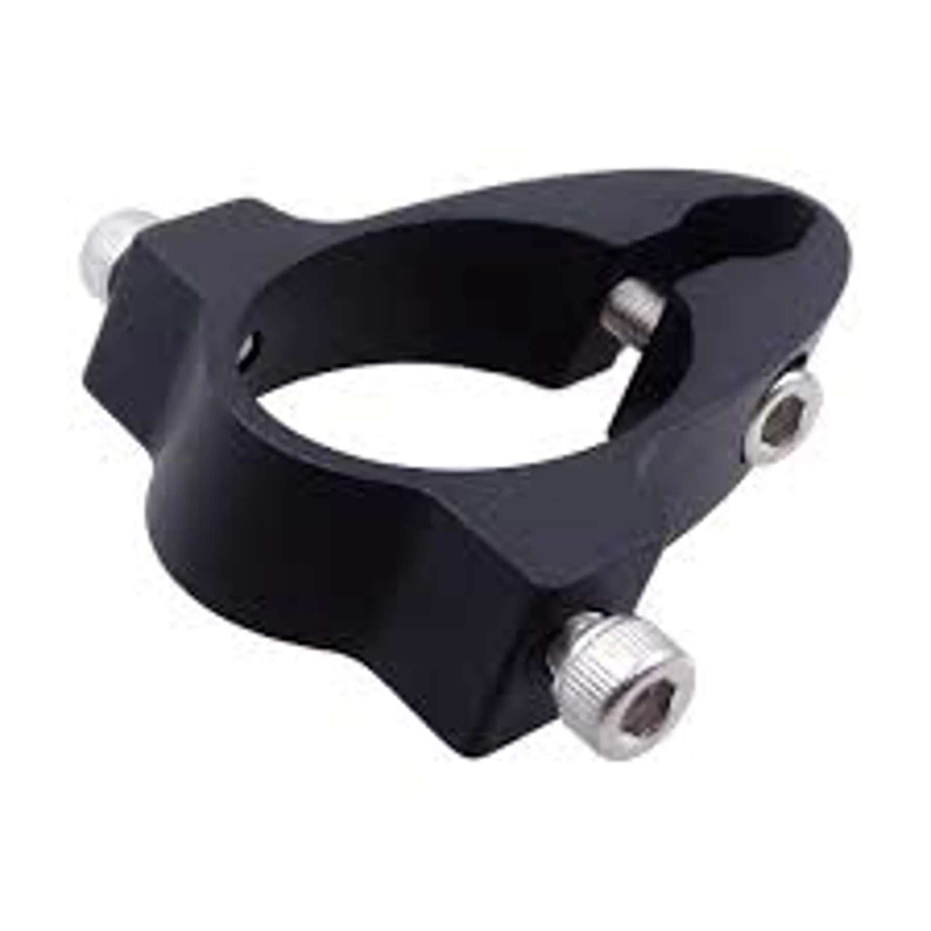 Clamp designed to bolt onto the seat post to allow mounting of a carry rack. For 30.9mm Diameter seatpost.